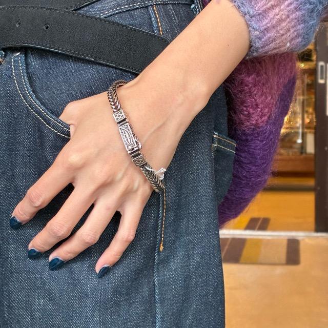 エキゾチックな留め具が存在感のあるブレスレット。