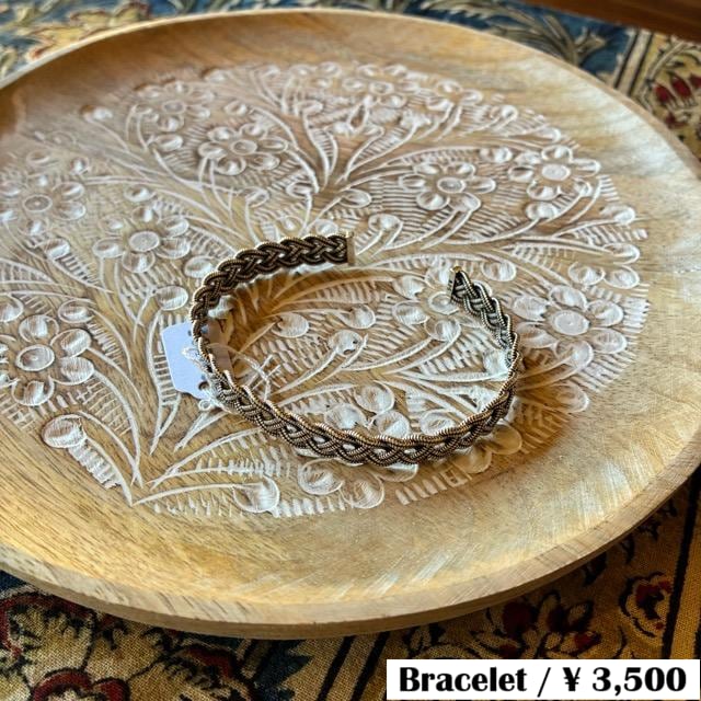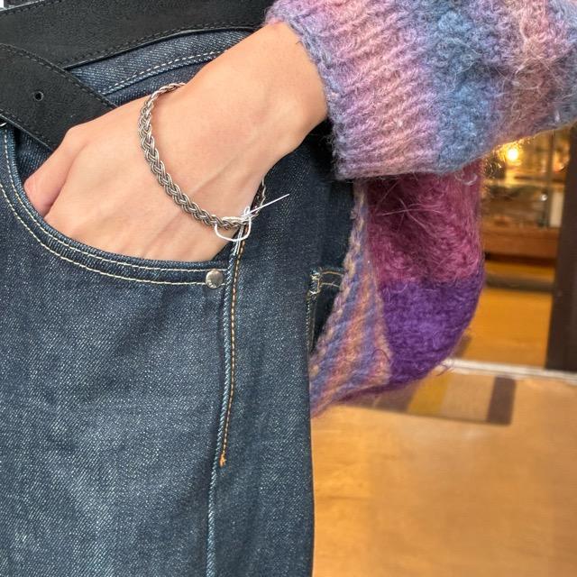 シンプルながらも目を惹く編み込みデザインのバングル。