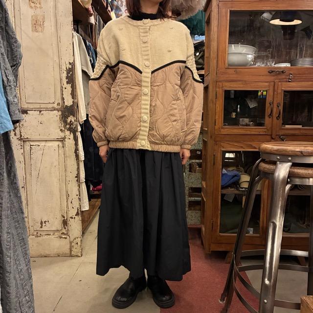 TOPANGA Ladies' Quilted & Knit Combination Jacket in White and Beige. This quilted and knit combo jacket is a white and beige blouson cardigan.