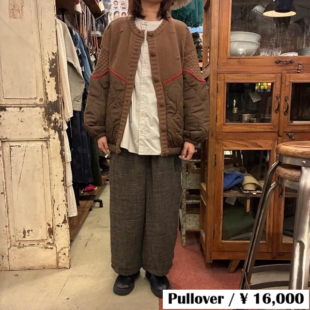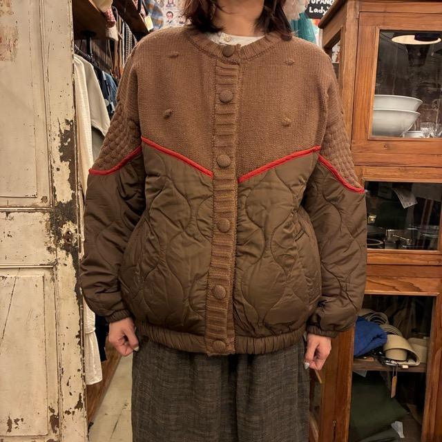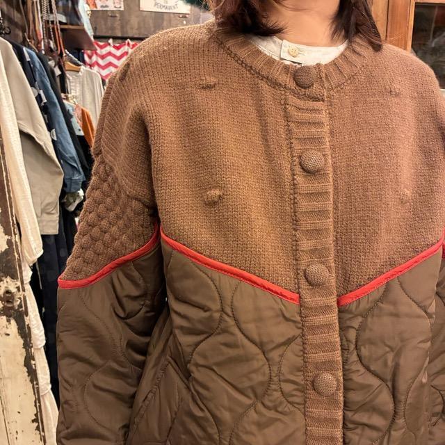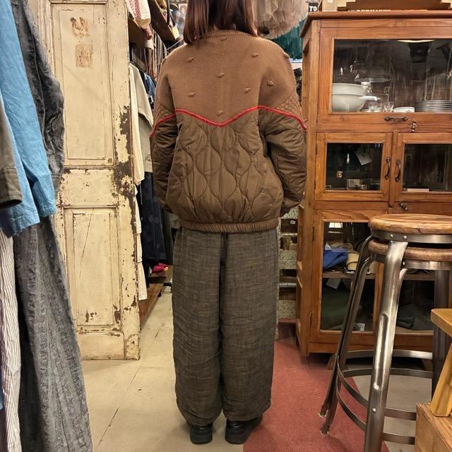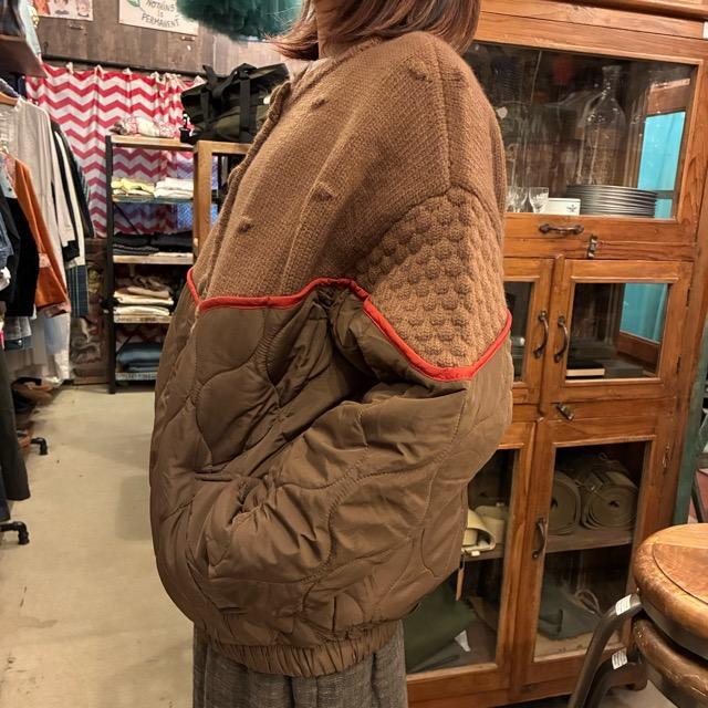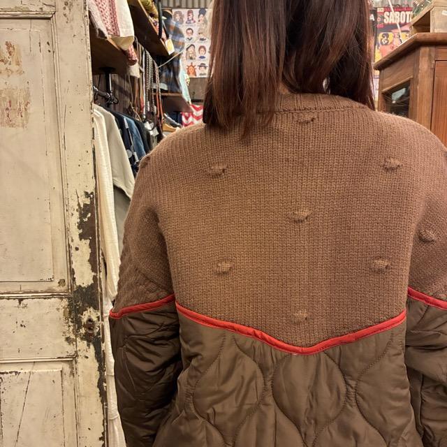 胸元からニットとキルティングに切り替わる