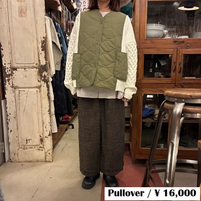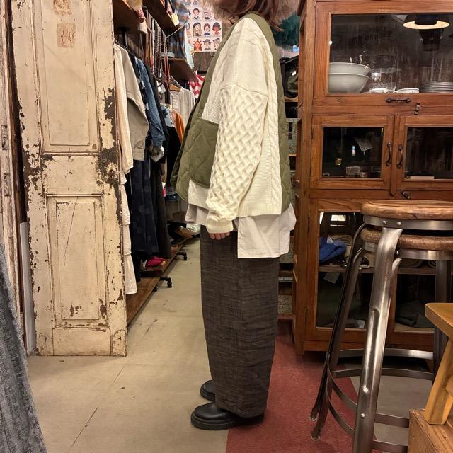 アラン編みのニットをドッキングさせたデザイン。