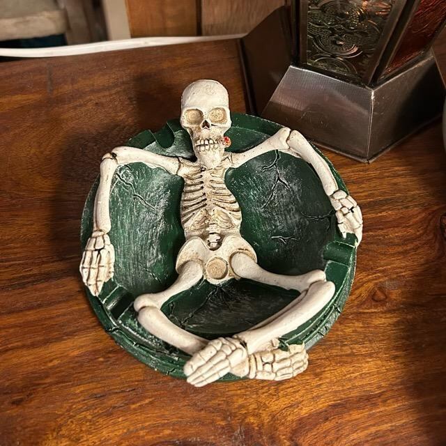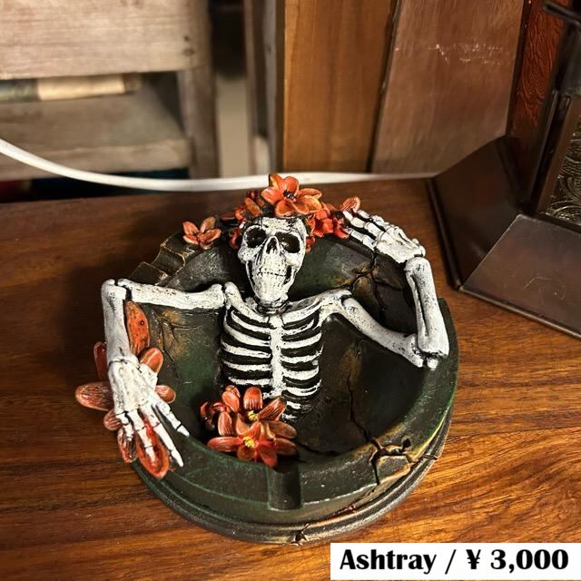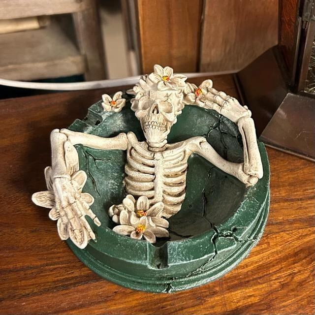 ガイコツが寝そべっているようなオシャレな灰皿です。