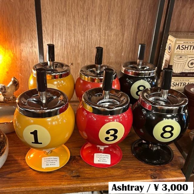 TOPANGA Zakka Cue Ball Ashtray, Red, Yellow, and Black. This cue ball-shaped ashtray is perfect as a decorative ornament or as a pop art piece. Also available: a cue ball in red, yellow, and black.