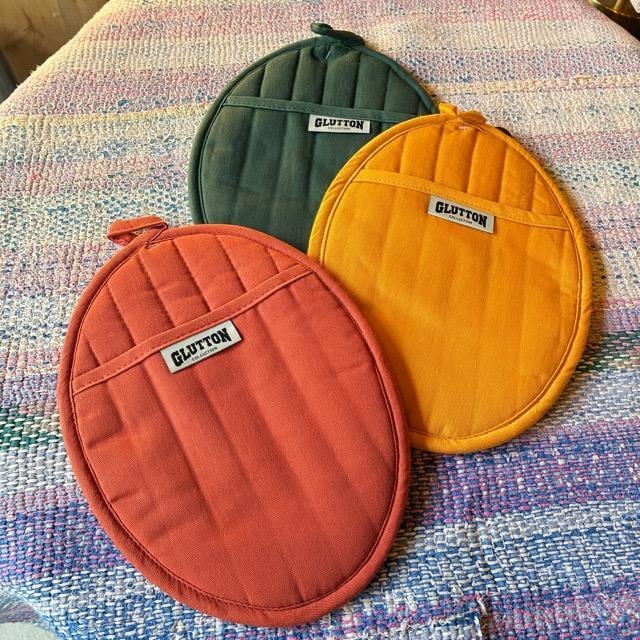 DULTON GLUTTON2 POT HOLDER 3 colors available: Orange, Yellow, and Green. Trivet and pot holder. Ships via mail.