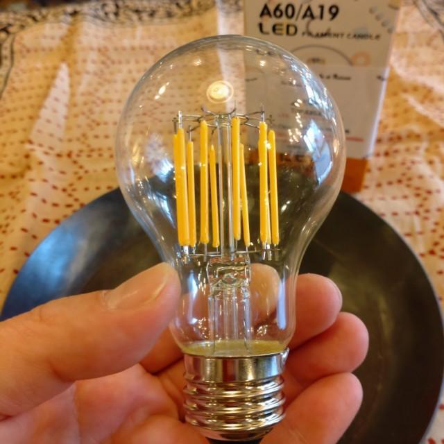 クリアなフィラメントタイプで明るさも広範囲。裸電球でつけてもインテリアとして十分にお楽しみ頂けます。