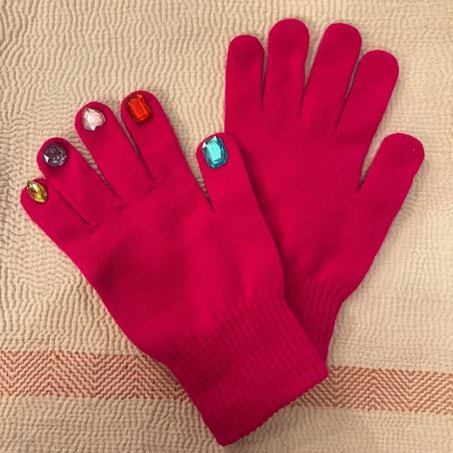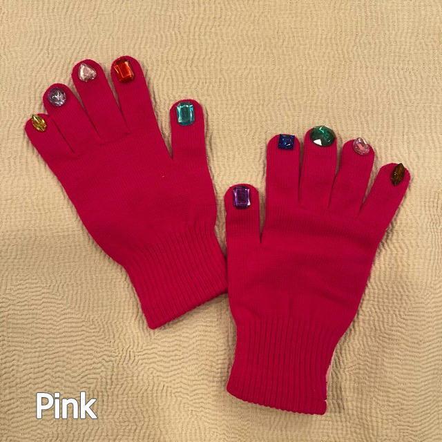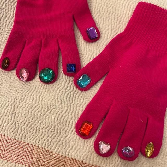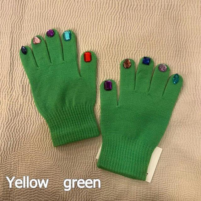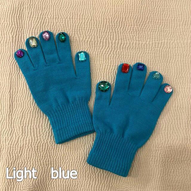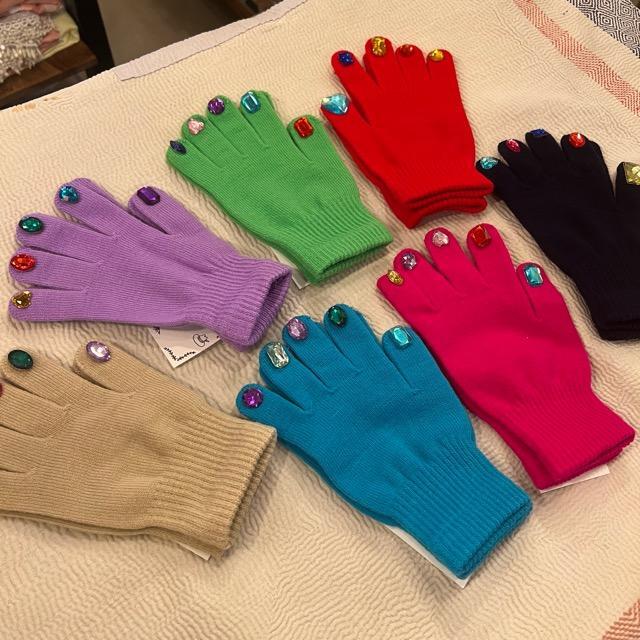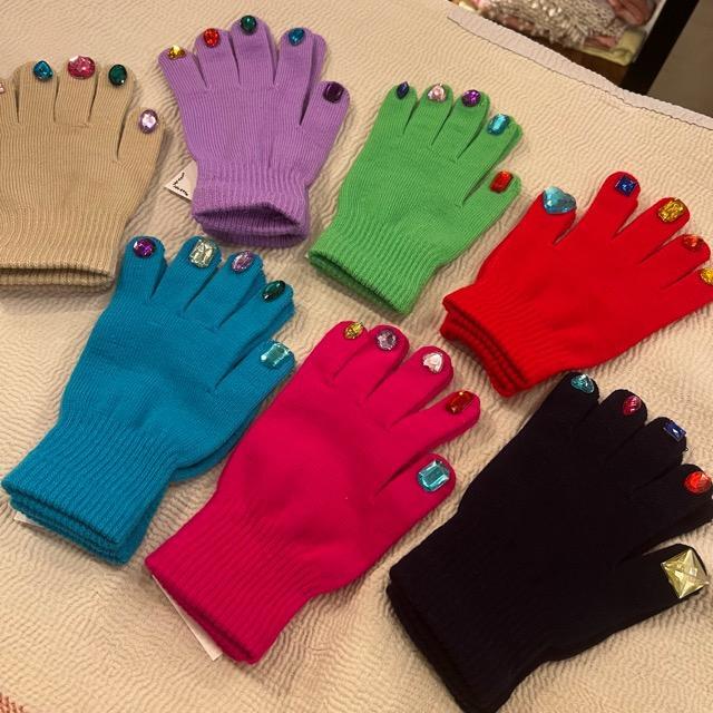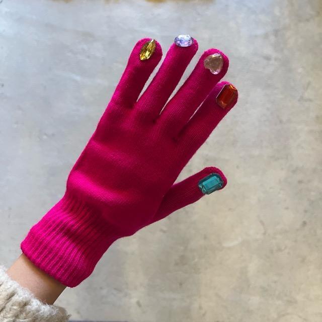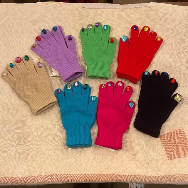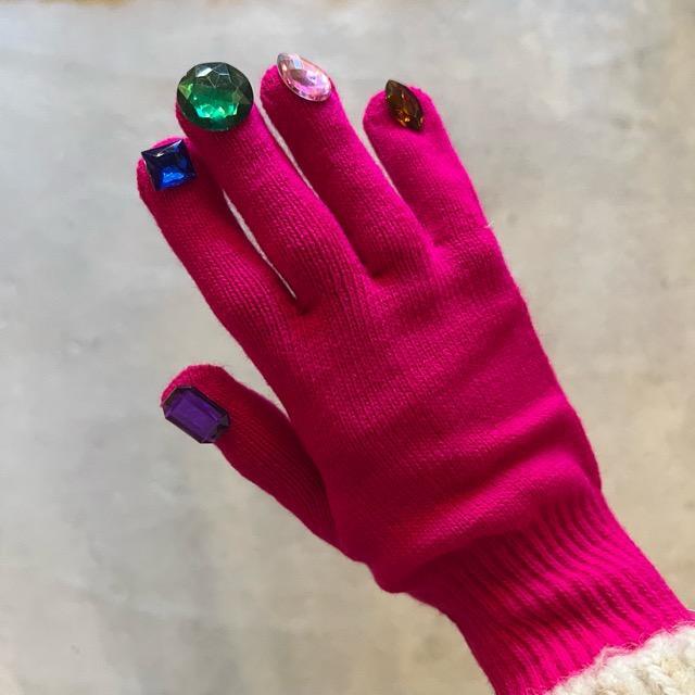 指先にカラフルなビジューがきらりと輝きネイルをしているような華やかなニット手袋。