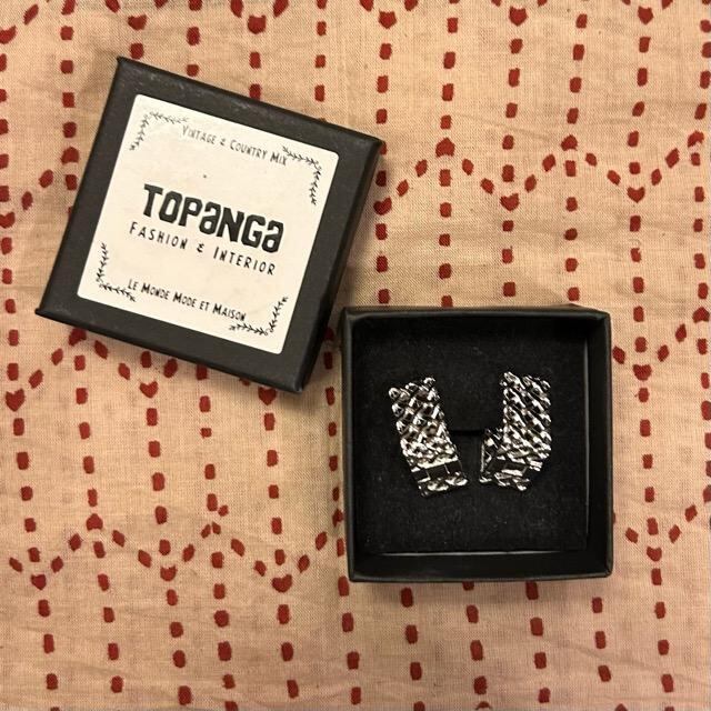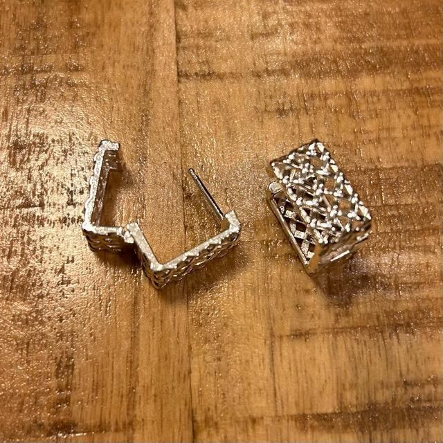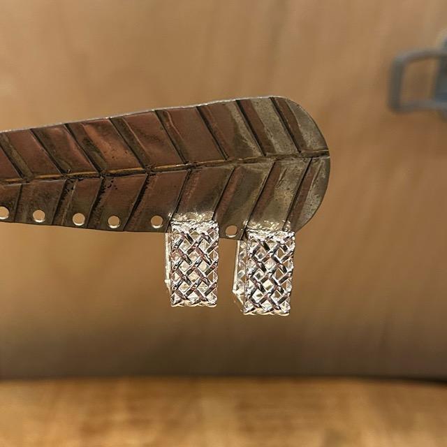 編み込みのような立体的なスクエア型のピアスです。
