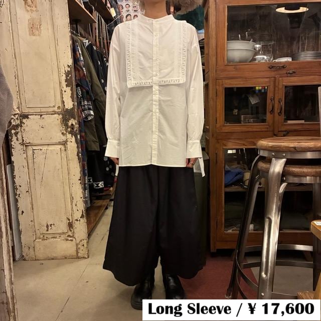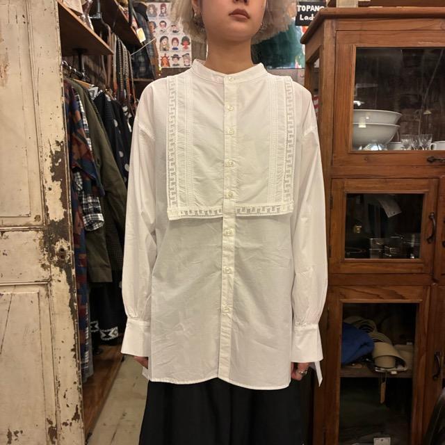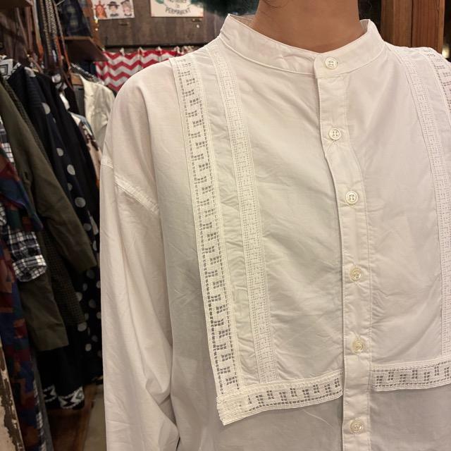 UNIVERSAL SEVEN Natural Typewriter Italian Filet Lace Yoke Shirt, White, White, Long Sleeve Blouse, Cotton