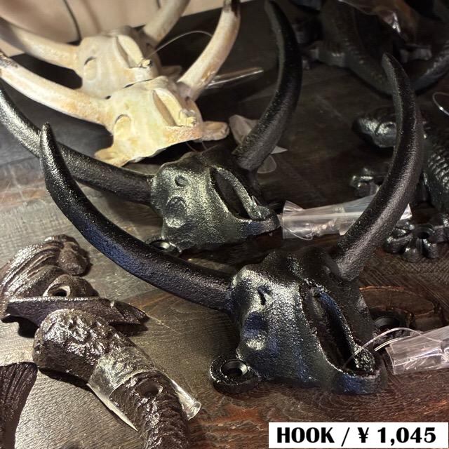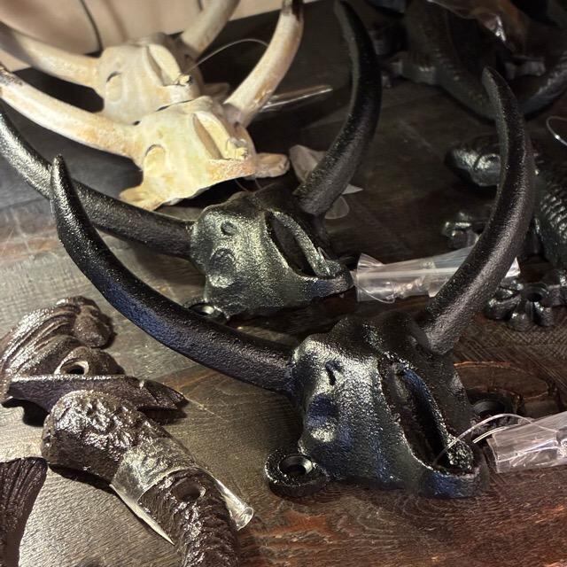 雄牛スカルモチーフのアイアンフック。