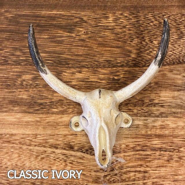 DULTON BULL SKULL HOOK (2 colors) - Classic Ivory and Antique Black. Perfect for DIY projects, simple ironwork, and store interiors.