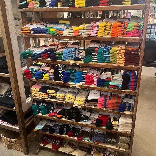 個性豊かなソックスなどの小物を合わせるスタイルを提案しています。