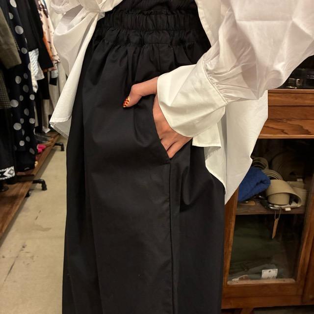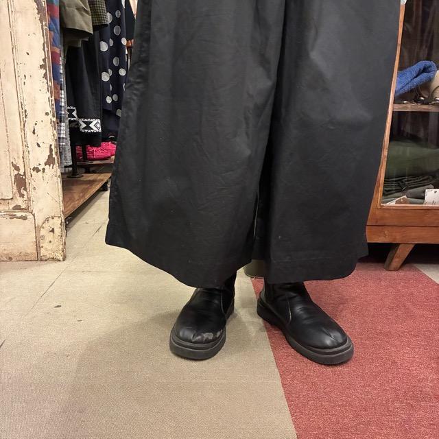 ICHI Cotton Gathered Volume Pants, Black, Wide Leg, Easy Pants, Baggy Pants, Women's Bottoms