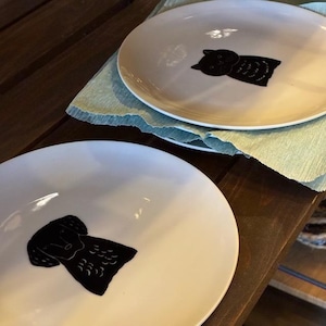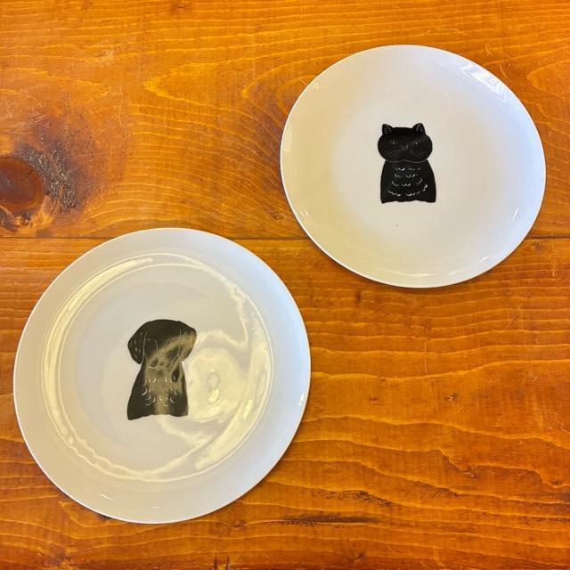 Mino Ennui Black Dog & Black Cat Plate (2 Types) - Mino Ware, Ennui Black Dog & Black Cat Plates, 2 Types, Microwave & Dishwasher Safe, Medium Plate, Round Plate