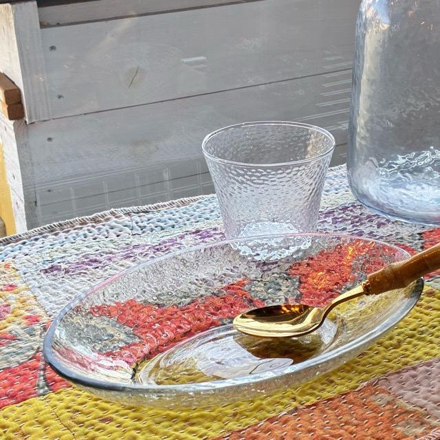 India SCENERY Glass Oval Plate, Small, perfect for appetizers, salads, Japanese, Western, Chinese, and fruit dishes.
