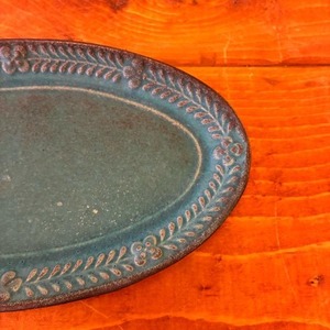 MASHIKO rosemary oval plate, shabby turquoise. Mashiko ware rosemary oval plate in shabby turquoise. Perfect for cakes, appetizers, and hors d'oeuvres. Microwave and dishwasher safe.