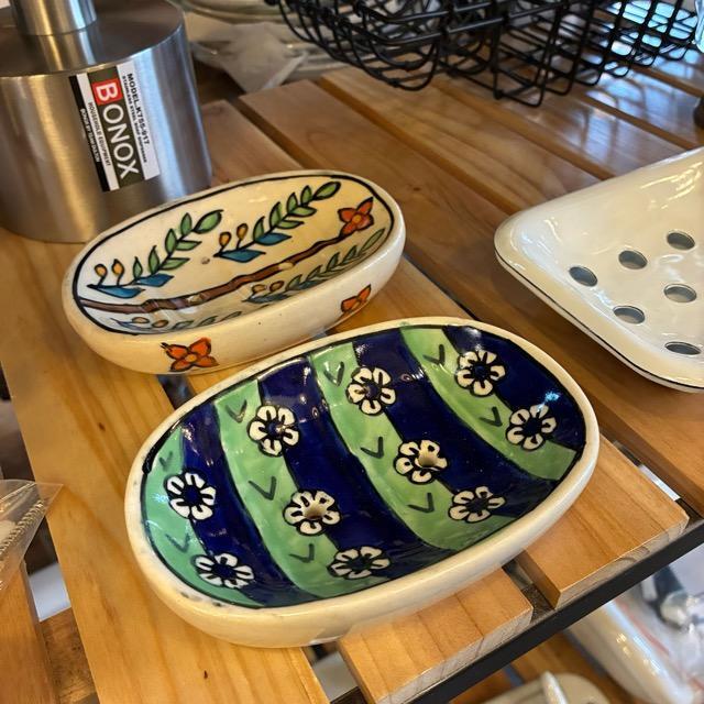 India Blue pottery soap tray (2 types) - Soap dish, soap holder, bathroom, ceramic, floral pattern