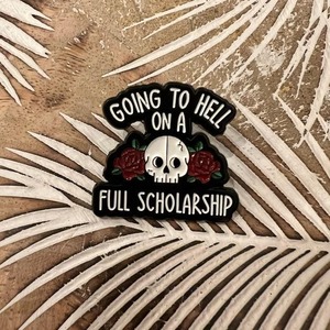 TOPANGA Jewelry GOING TO HELL ON A FULL SCHOLARSHIP Pin Brooch Gift