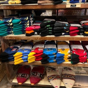 個性豊かなソックスなどの小物を合わせるスタイルを提案しています。