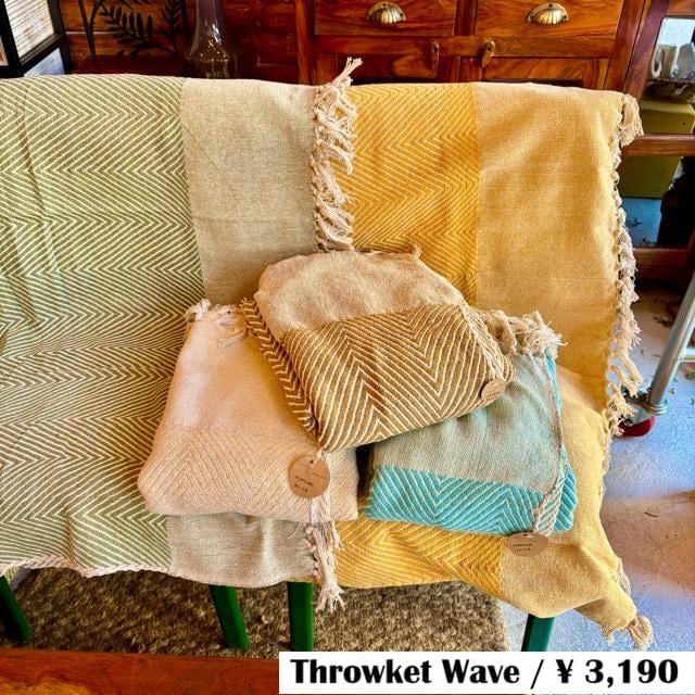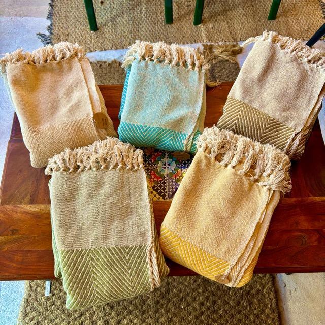 India Cotton Throwket Wave 140x200cm 5 colors available: Yellow, Olive, Blue, Natural, and Mocha