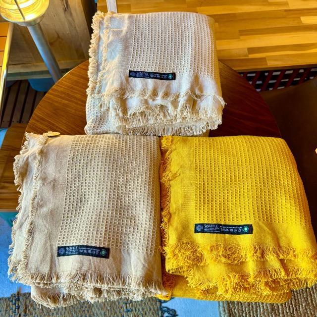 India Cotton Throwket Waffle 150x220cm 3 Colors Available: Natural, Beige, Mustard, Multi-Cover