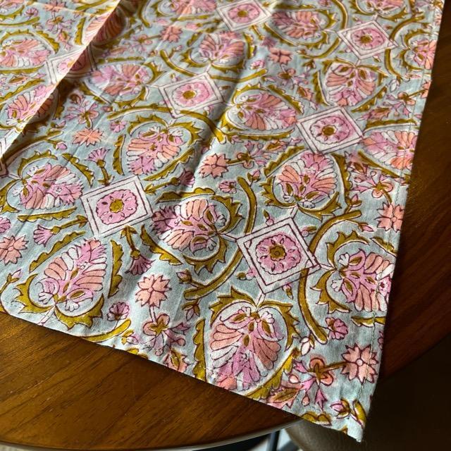 薄手の柔らかいインド綿100%で、ハンカチやミニスカーフ、プレゼントのラッピングや手作りマスク用の生地としてもご好評を頂いております。
