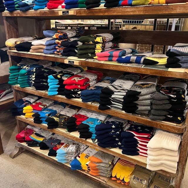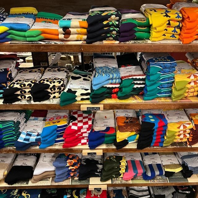 個性豊かなソックスなどの小物を合わせるスタイルを提案しています。