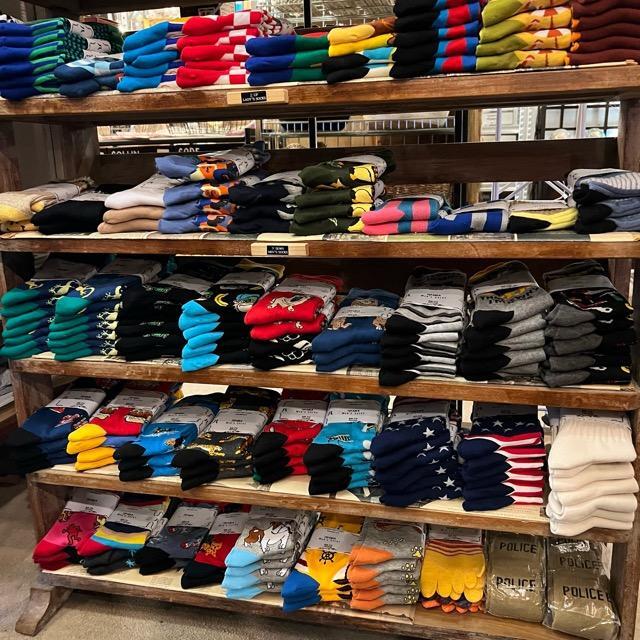 個性豊かなソックスなどの小物を合わせるスタイルを提案しています。