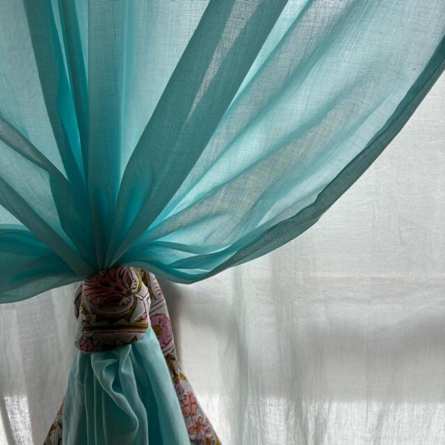 India Cotton Voile Double Curtains, Light Blue, 100x180cm, Indian Cotton Voile Double Curtains, Light Blue, Lace Curtains, Room Divider