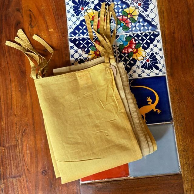 India Cotton Voile Double Curtains, Mustard, 100x130cm, Waist-High Window Curtains, Lace Curtains, Yellow