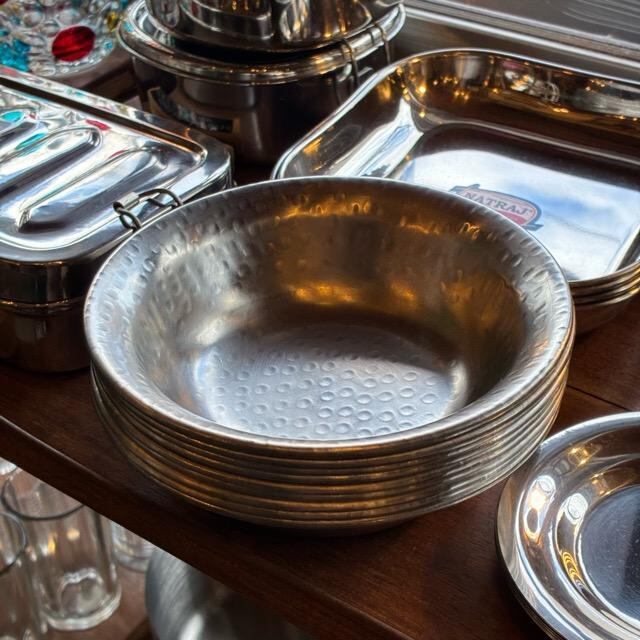 インドではボウルに限らず、そのほかの食器などもステンレス製のものがよく使われています。