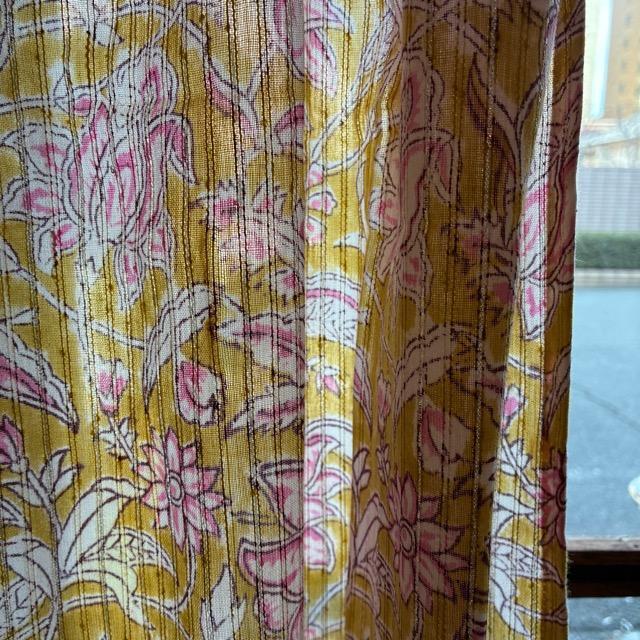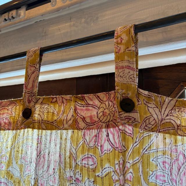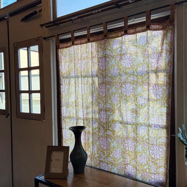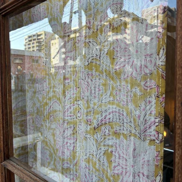 ハンドブロックプリントを施した温かみのある色合いのレースカーテン。