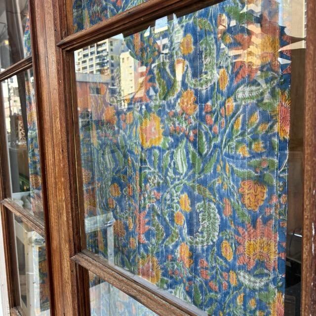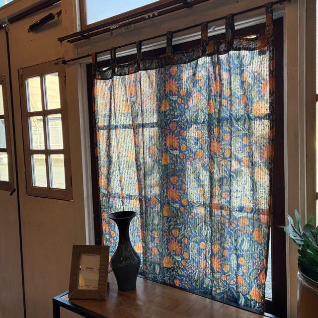 ハンドブロックプリントを施した温かみのある色合いのレースカーテン。