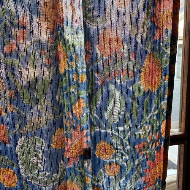 India Rapid Print Lurex Curtain, Blue, 100x180cm, Room Divider, Noren, Lace Curtain