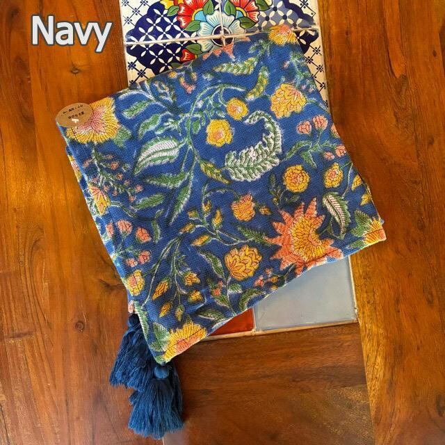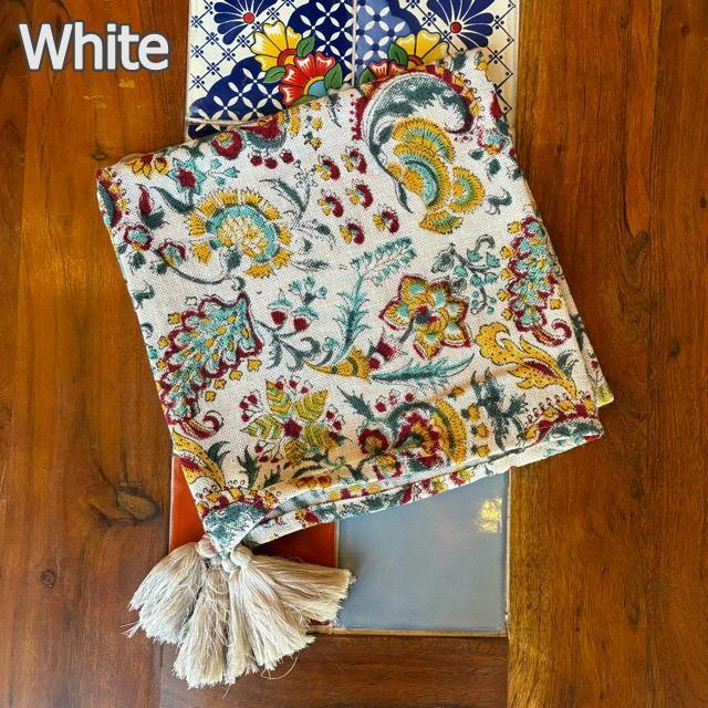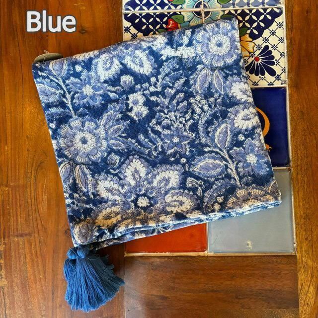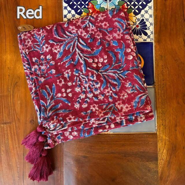 India Block Print Tablecloth, 97x97cm, 5 Colors, Multi-Cover Curtain, Rapid Print Floral Pattern with Tassels