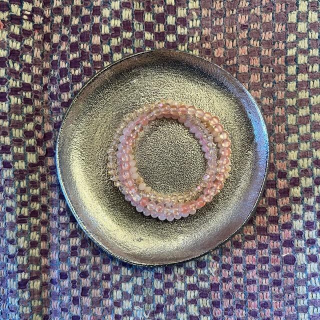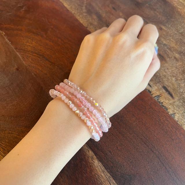 ピンクカラーの4つセットのブレスレット。