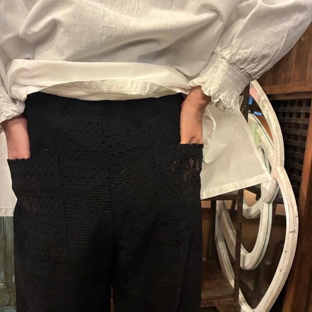 TISSU Patchwork Lace Jogger Pants in Black, Easy Fit, Long Length, Made in Japan, Universal Fit, Inner Pants