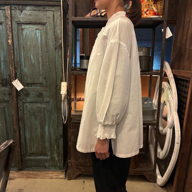 UNIVERSAL SEVEN Cotton Cupra Linen Little Frill Classic Blouse in White and White. This white shirt is made of cotton and linen.