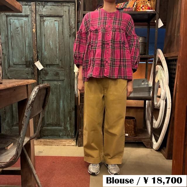 シンプルなボトムスと合わせて、ブラウスを主役にスタイリングを楽しむのがおすすめです。
