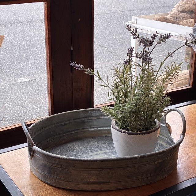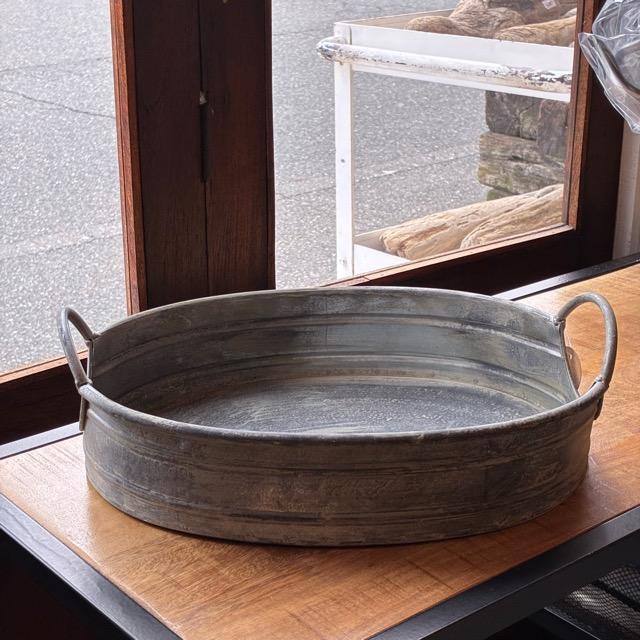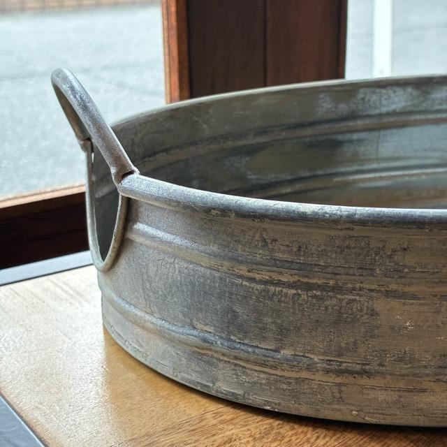 アンティークのような風合いが魅力のブリキトレイ。