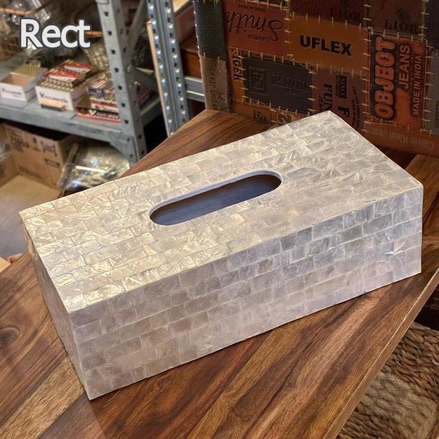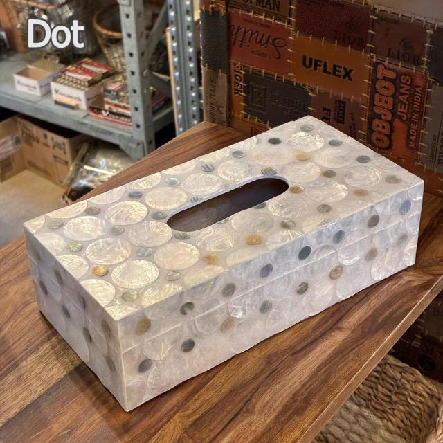 Indonesia Shell Tissue Case (2 types) - Dotted and rectangular tissue box for living room, bedroom, or entryway.