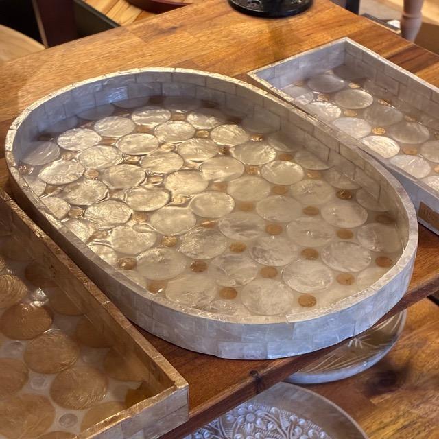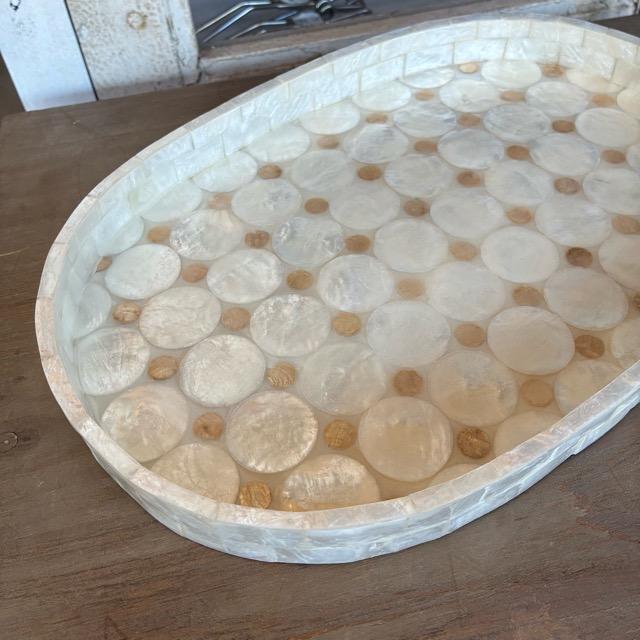 Indonesia Capiz Shell Mosaic Oval Tray, White. Perfect for small items or accessories.