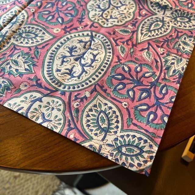 薄手の柔らかいインド綿100%で、ハンカチやミニスカーフ、プレゼントのラッピングや手作りマスク用の生地としてもご好評を頂いております。