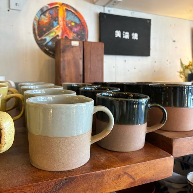 Mino ware Soil Mug cup 250ml Available in 2 colors: White and Moss Green Bowl Mug cup Microwave safe Dishwasher safe Mino Bunzan kiln