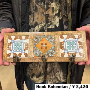 India Three Hook Bohemian Tiles インド フック3連ボヘミアンタイル インテリア 雑貨 フック