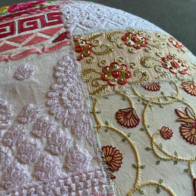 座面に使われているのは、スパンコールや鮮やかな糸で