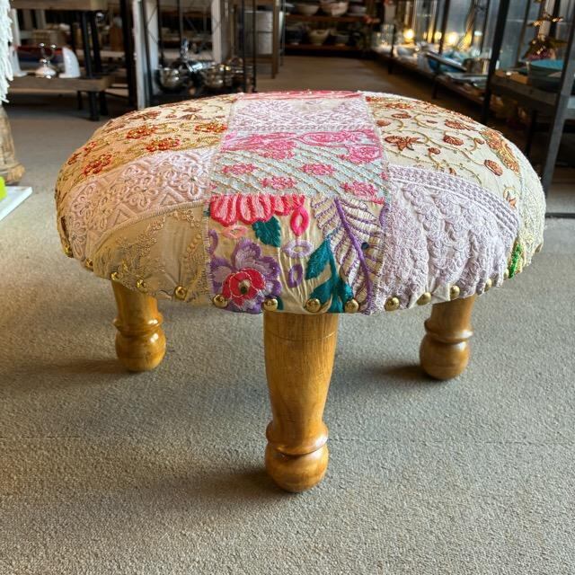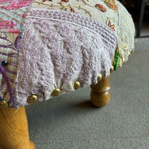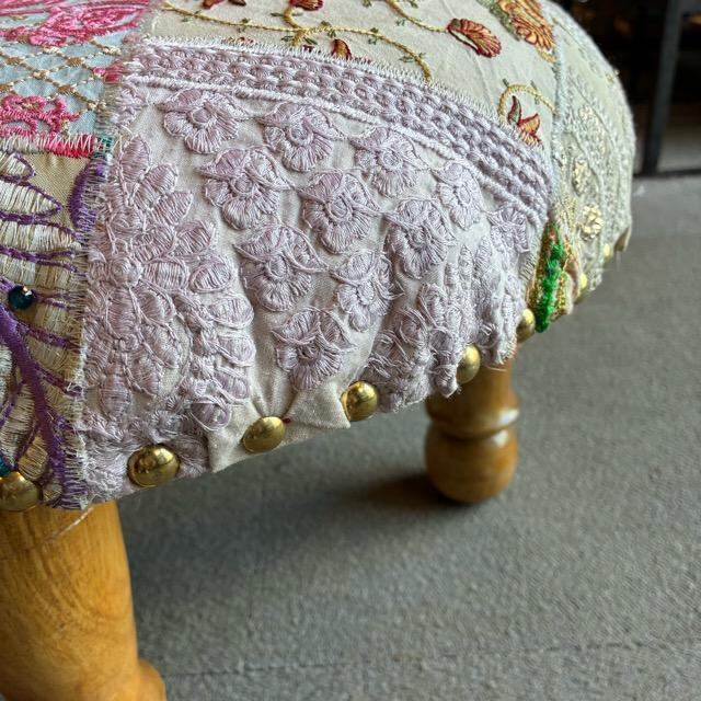 India Zari patchwork stool White インド ザリパッチワークスツール ホワイト B 家具 椅子 カンバディア チェア ザリ刺繍 オットマン