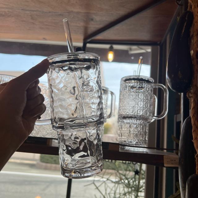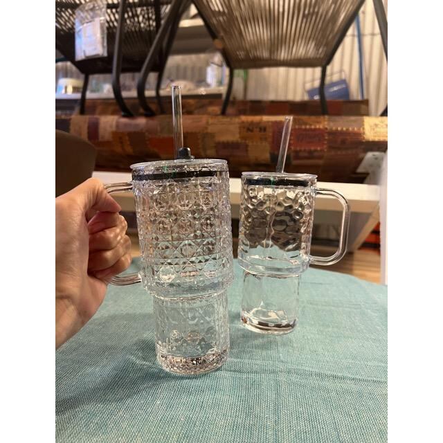 TOPANGA KITCHEN Glass Tumbler 2Type ガラスタンブラー 2種 ストロー付き 蓋付き タンブラー