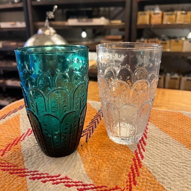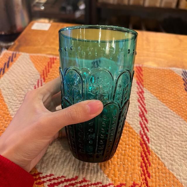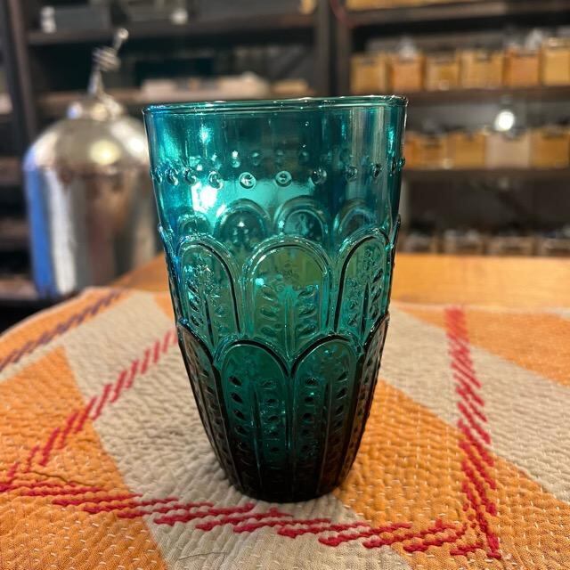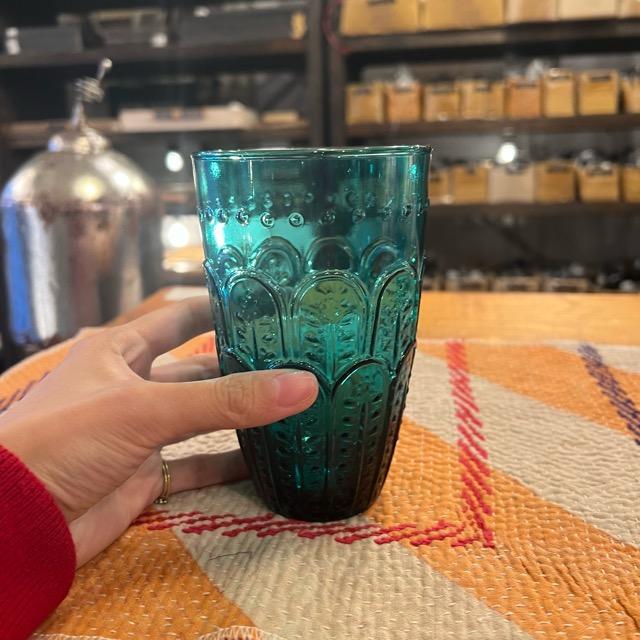 Embossed Glass Tall Blue Green エンボスグラス トール ブルーグリーン グラス カップ