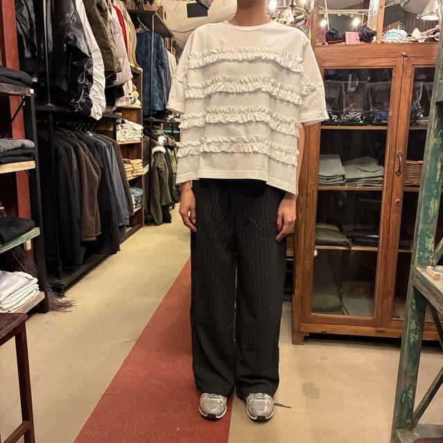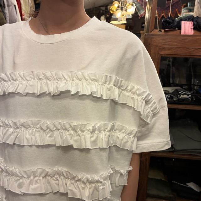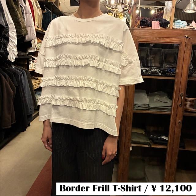 UNIVERSAL SEVEN ユニヴァーサルセブン クラシック天竺ボーダーフリルTシャツ シロ ホワイト カットソー ブラウス 半袖 コンボ プルオーバー