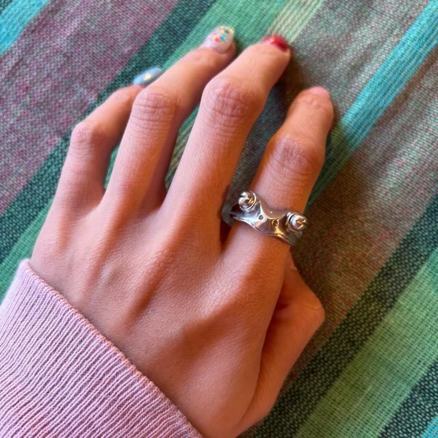 愛らしいカエルをモチーフにした遊び心溢れるデザインリング。